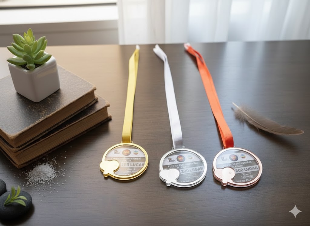 Premia el esfuerzo con una pieza moderna y sofisticada. Nuestras medallas de acrílico cristalino ofrecen un acabado impecable con grabado láser permanente que no se borra. Incluye cinta de alta calidad. Durabilidad y brillo excepcional para momentos inolvidables.