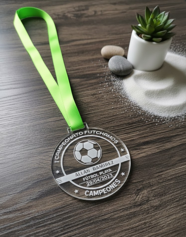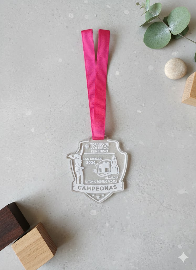 Premia el esfuerzo con una pieza moderna y sofisticada. Nuestras medallas de acrílico cristalino ofrecen un acabado impecable con grabado láser permanente que no se borra. Incluye cinta de alta calidad. Durabilidad y brillo excepcional para momentos inolvidables.