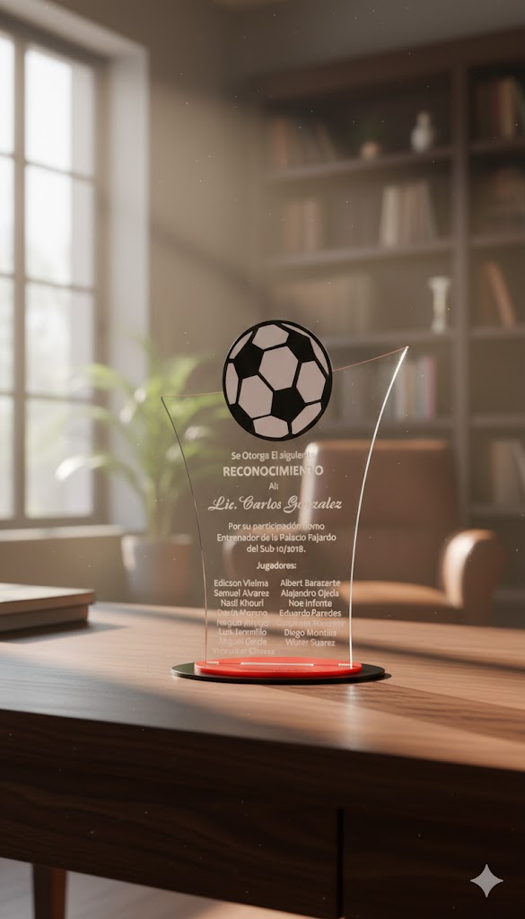 Premia el esfuerzo con una pieza moderna y sofisticada. Nuestras medallas de acrílico cristalino ofrecen un acabado impecable con grabado láser permanente que no se borra. Incluye cinta de alta calidad. Durabilidad y brillo excepcional para momentos inolvidables.